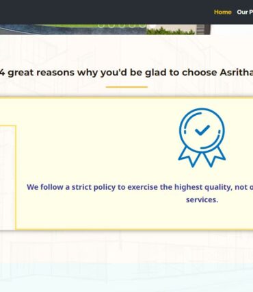 The company incites on its remarkable journey with a clear vision and mission to reach new heights and meet the aspiration by offering quality homes. Asrithas always strived for benchmark quality, customer-centric approach, uncompromising business ethics, timeless values, and transparency in all spheres of business conduct.