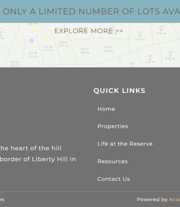 “The Reserve at Balcones lies in the heart of the hill country, nestled on the eastern border of Liberty Hill in Central Texas. The proposed site boasts 246 acres of rolling hills, a meandering creek, and a beautiful community lake. Adjacent to the development on three sides is the Balcones Canyonland National Wildlife Refuge, which further contributes to the natural tranquility.”